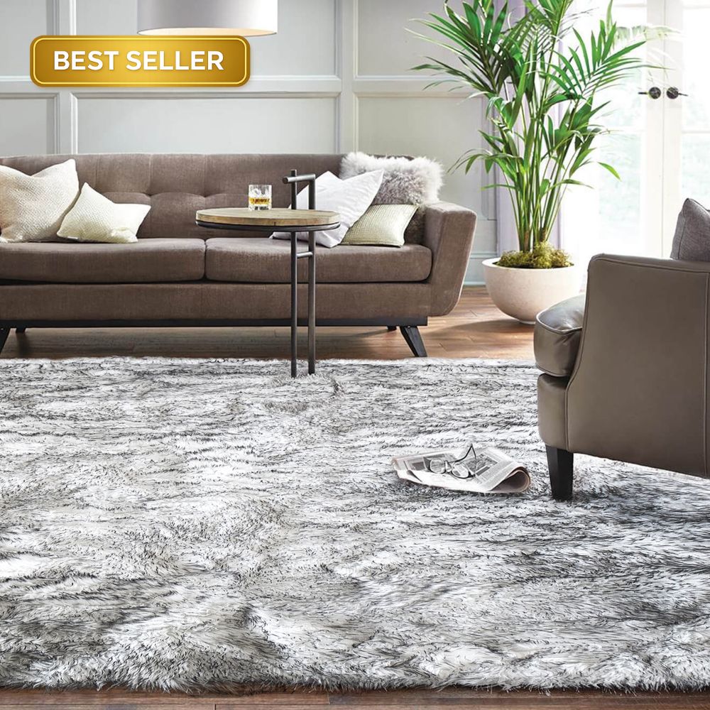 Sheepskin Black And White Faux Fur Shag Area Rug