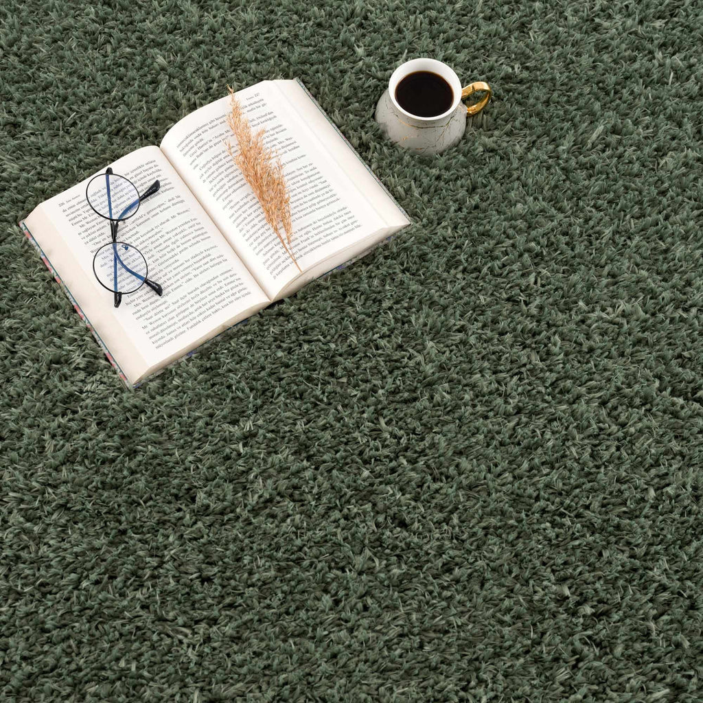 Faina Solid Green Shag Washable Area Rug - Clearance