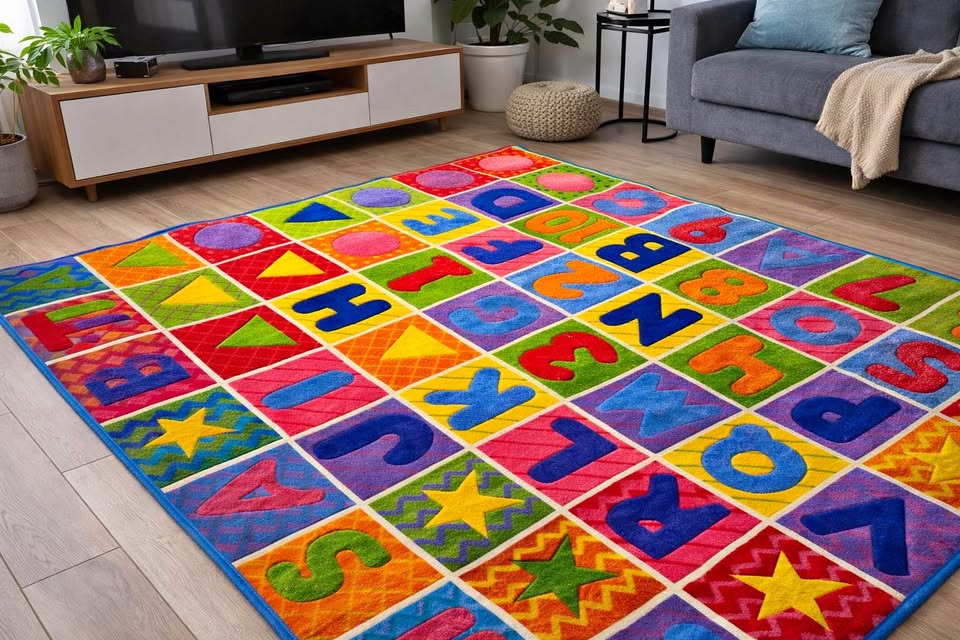 5x7 Kids Alphabet Area Rug Colorful ABC Letters & Numbers Educational Playroom Carpet